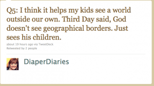 4, 5 & 6. We talked a lot about child sponsorship. We asked how child sponsorship has changed them, their children or their family. I love these tweets about it…